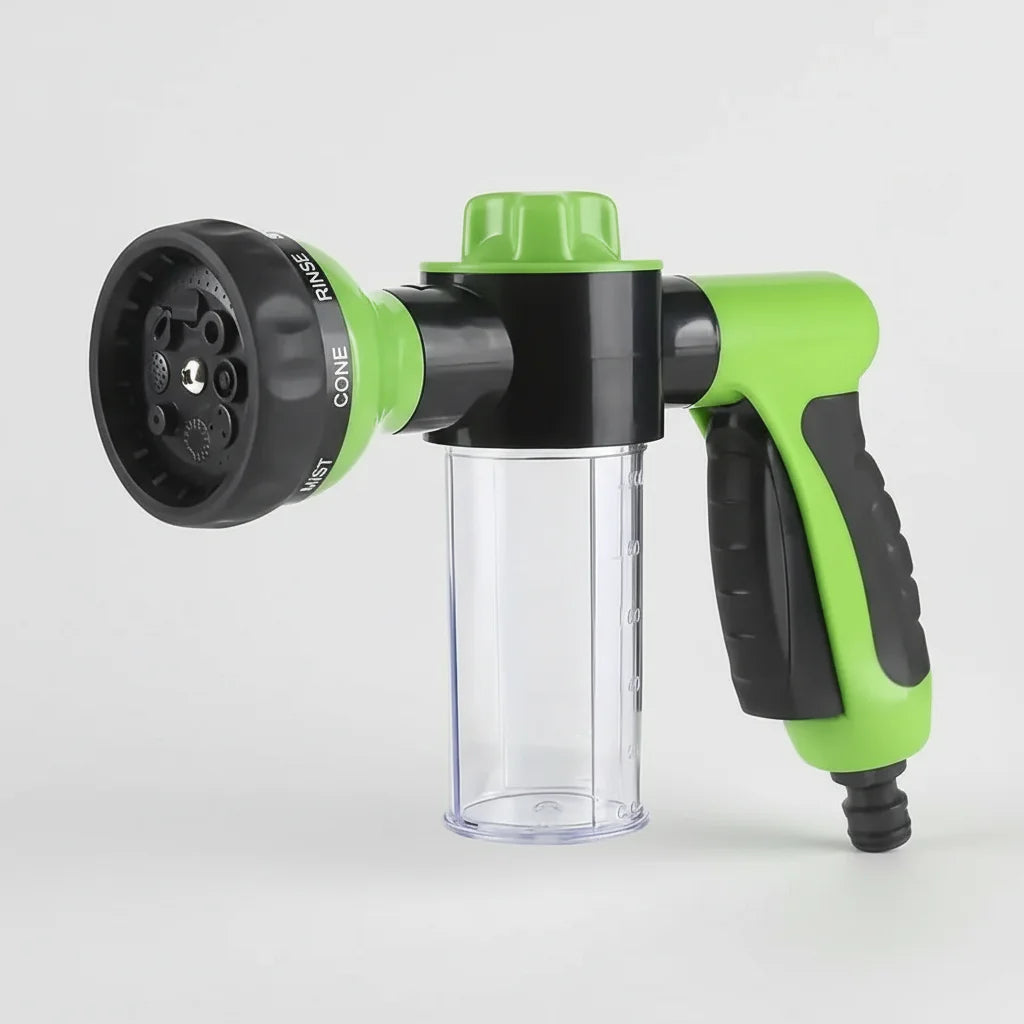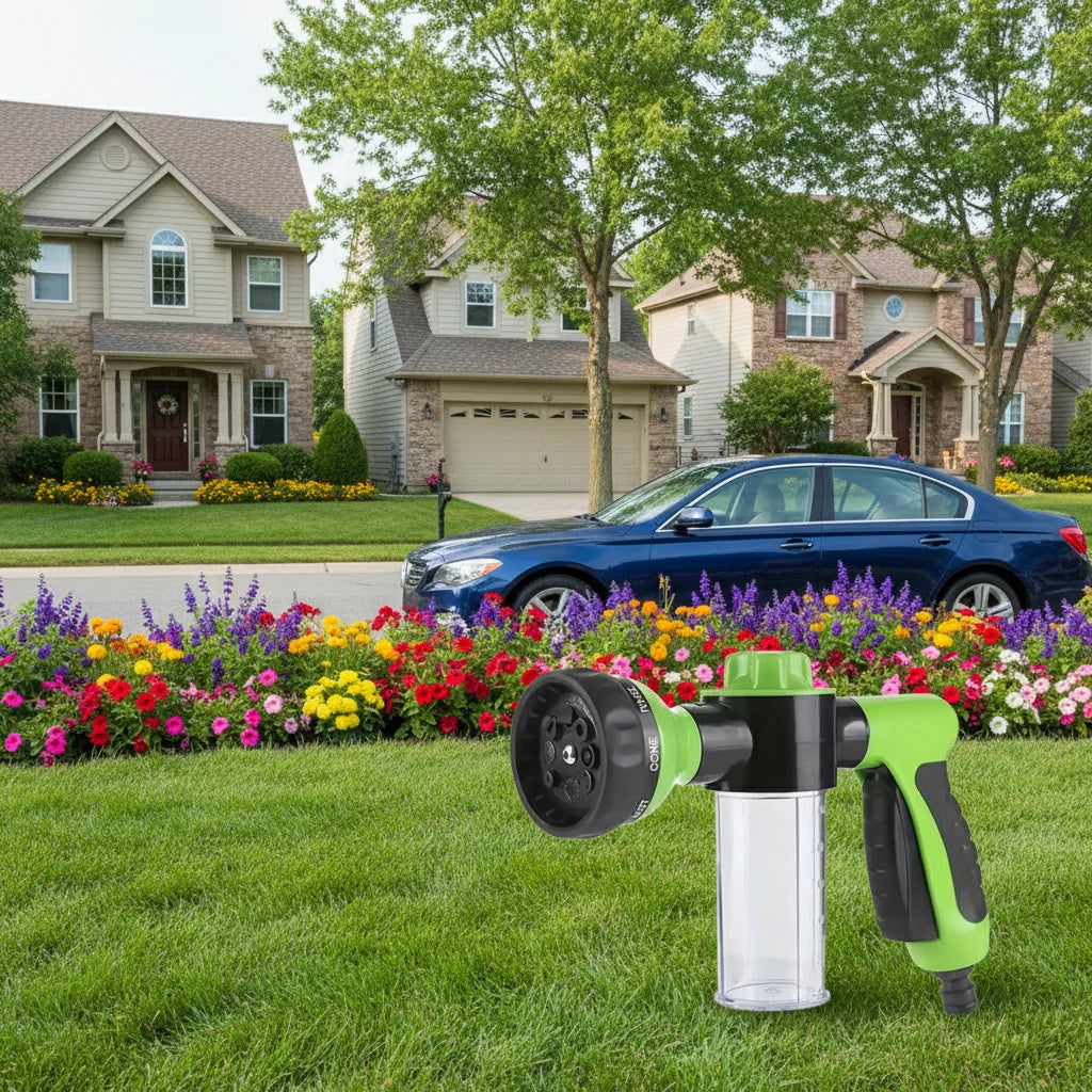 Our AquaSpray 8-in-1 Nozzle is engineered for ultimate versatility, combining multiple spray patterns and a unique soap/shampoo mixing system. It's your go-to tool for pet grooming, plant watering, car washing, and general outdoor cleaning, all in one convenient device!