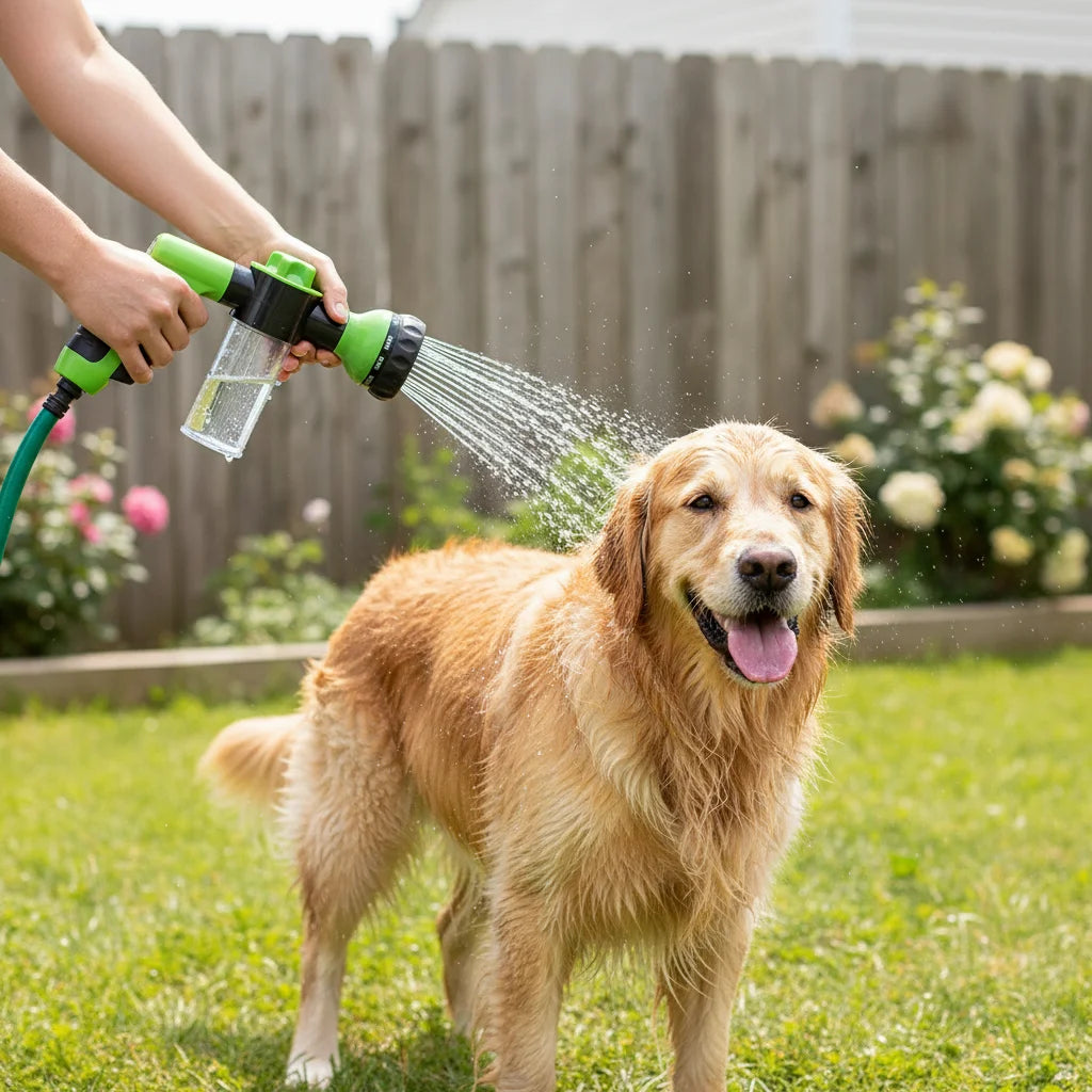 Pet owners love the AquaSpray 8-in-1 Nozzle for its integrated shampoo container and easy-to-control spray. It transforms pet bath time into a quick, efficient, and enjoyable experience, ensuring your beloved pets are clean and happy with minimal fuss.